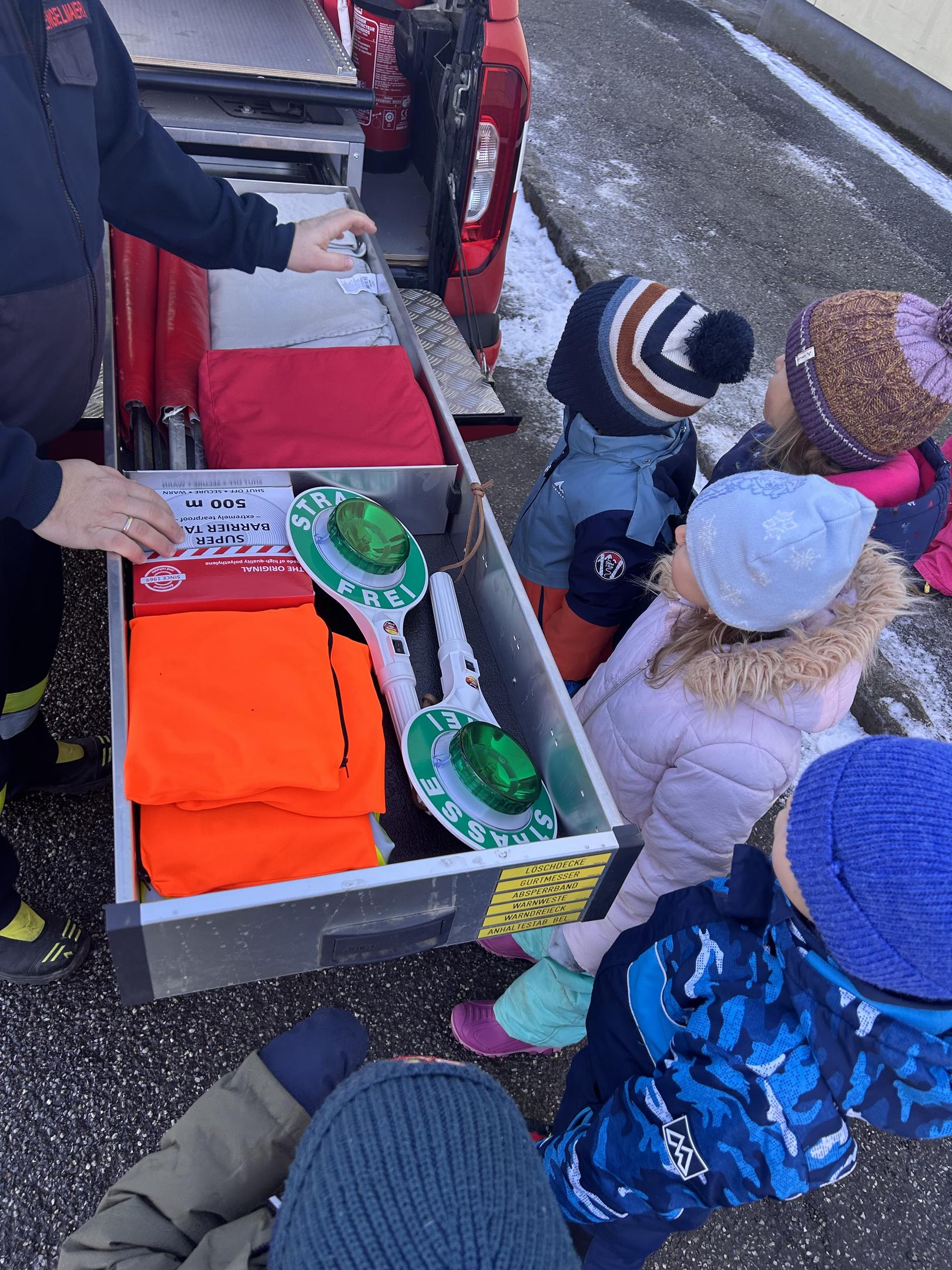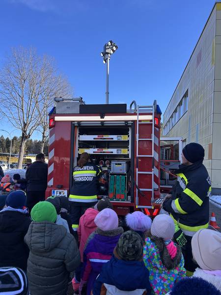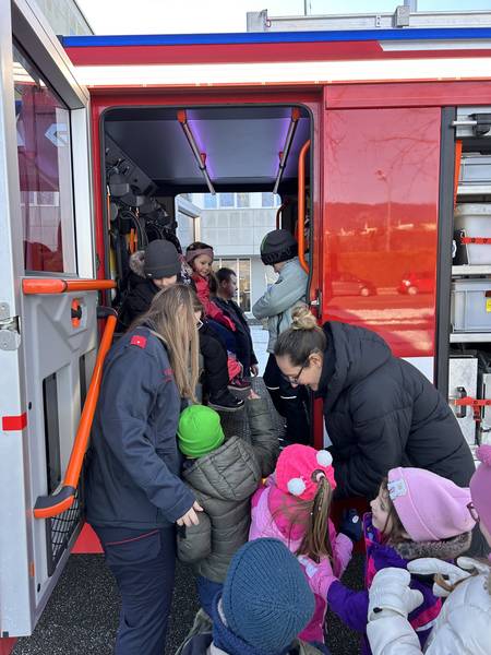 Die Kinder tauchten begeistert in die Welt der Feuerwehr ein, durften die großen Fahrzeuge aus nächster Nähe bestaunen und erfuhren spielerisch, wie wichtig und spannend die Arbeit der Feuerwehr ist. Mit funkelnden Augen, vielen Fragen und echter Neugier erlebten die Kinder einen Vormittag, der ihnen noch lange in Erinnerung bleiben wird.