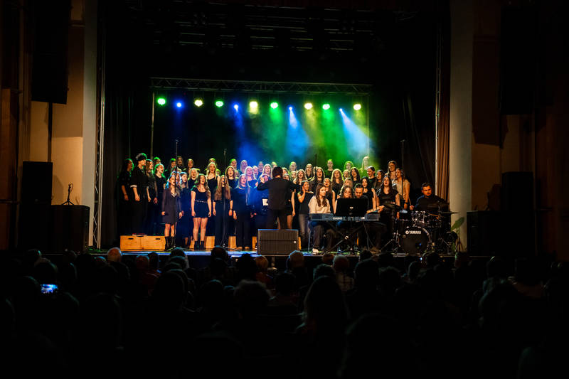 Schulchor unter der Leitung von Elke Pölzl, der das Publikum sofort in