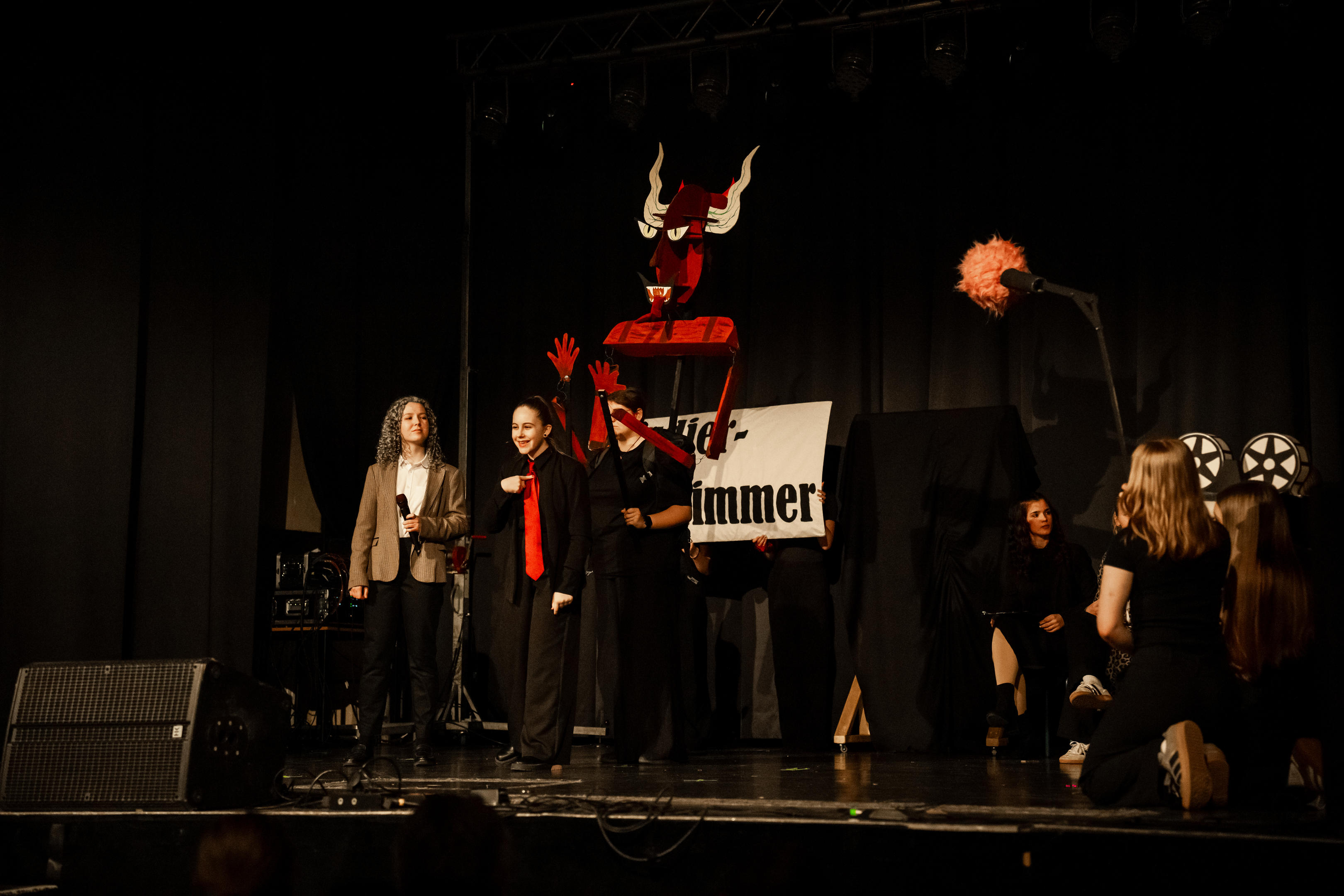 Bühnenbilder und Requisiten werden eigenständig geplant, entworfen und