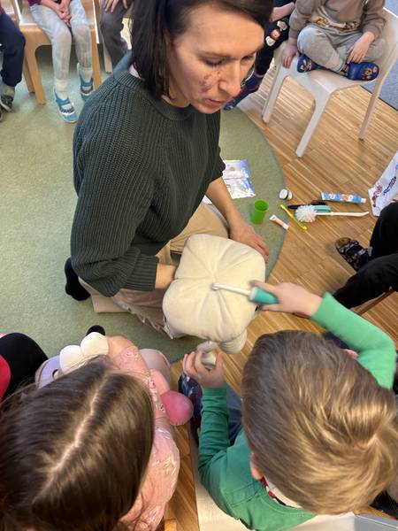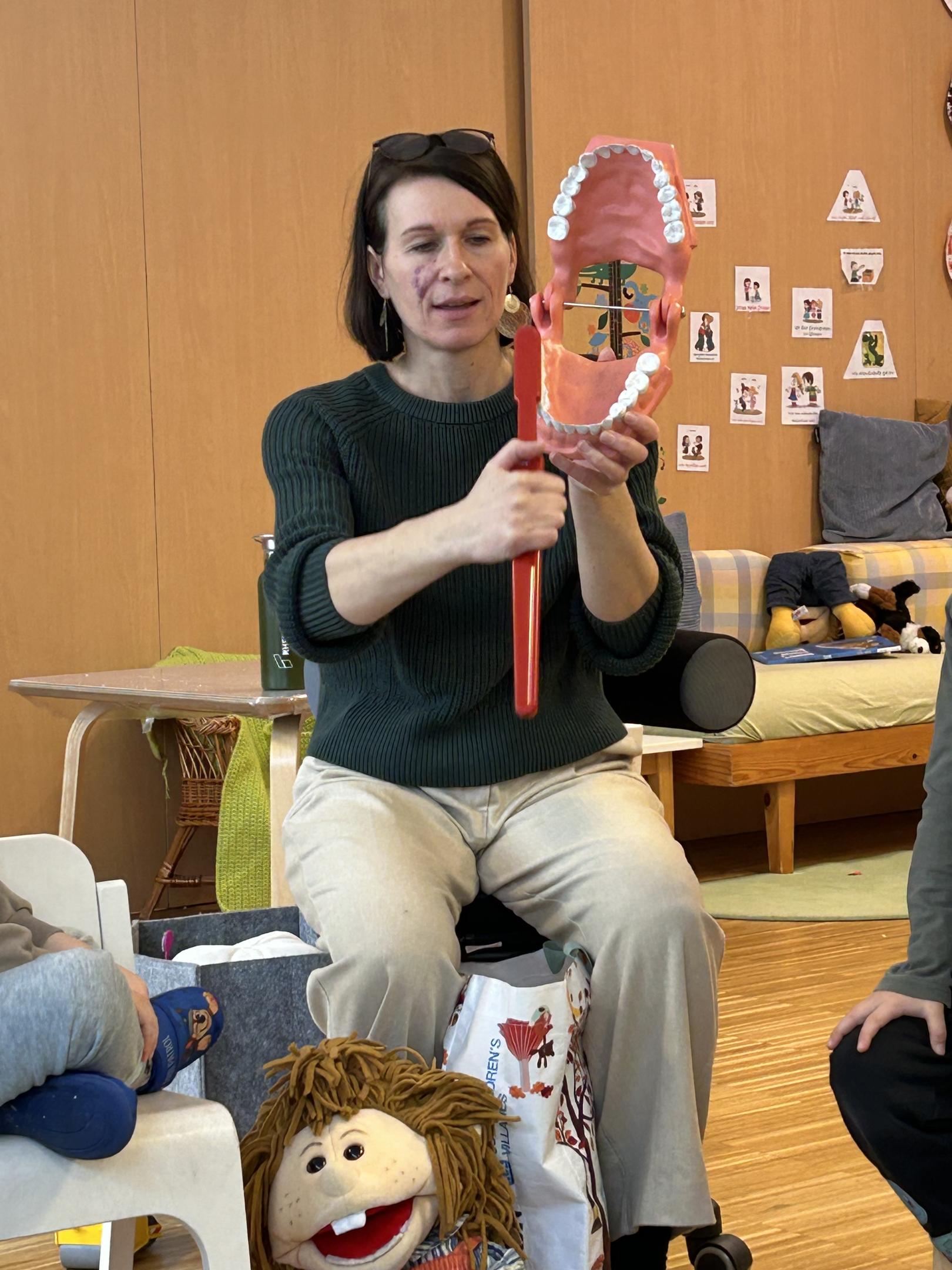 Auf kindgerechte, spielerische und anschauliche Weise vermittelte sie den Kindern wichtige Grundlagen zur Zahngesundheit und Mundhygiene.
