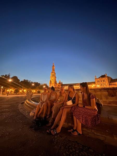 In Sevilla angekommen, durften wir bereits unsere Gastfamilien kennenlernen und die Stadt ein wenig erkunden bei Temperaturen um 50°C. Am Montag startete dann auch unser Praktikum in verschiedensten Kinderkrippen in Sevilla. Dort durften wir unterschiedliche Erfahrungen und Eindrücke sammeln. Auch nachmittags wurde es nie langweilig, denn wir besuchten einen Spanischkurs in der Sprachschule, wo wir die Grundlagen der spanischen Sprache erlernen konnten.